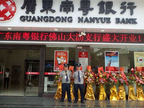 2015年10月 我公司與廣東南粵銀行大瀝支行支行合作,共派駐保安員6名。