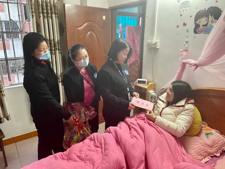 走訪慰問傷病困保安員。每逢春節前后,公司領導帶領相關部門負責人前往全市各保安執勤點走訪慰問堅守在一線的保安員,為其帶去公司的問候。公司還制定制度,一旦員工身體出現傷病,公司領導或部門負責人要第一時間前往探望慰問。同時,公司設立互助金,為困難、傷病的員工進行救助;每年春節前夕召開困難員工座談會,向員工及家屬介紹公司經營及發展情況,并主動為員工解決家庭生活困難。