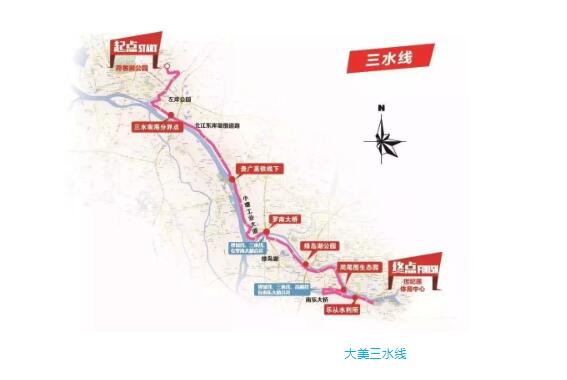 早上在現(xiàn)場激情歡騰的啟動儀式之后,隊伍從荷香湖公園出發(fā),途經(jīng)水韻橋,穿經(jīng)廣佛肇城軌北站動車橋底(即桃園西側(cè)),順臨江路東側(cè)人行道,往西南涌魔水光輝廣場公園,然后往三江水韻公園、紅頭巾廣場、環(huán)東路行人道、廣三高速南側(cè)單邊橋(人行橋)、右岸公園親水長廊、北江大堤,到達第一簽:三水南海分界點,行程十公里。