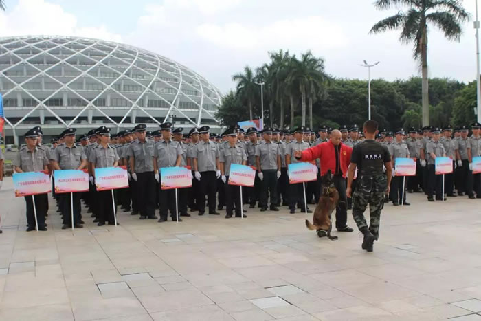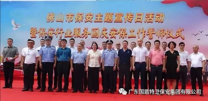 為了迎接中華人民共和國70周年華誕,號召全市保安積極行動起來,7月24日上午,佛山市保安服務行業在禪城區嶺南明珠電視塔廣場,與全國、全省同步,舉行了隆重的聲勢浩大的“佛山市保安主題宣傳日暨保安行業服務國慶安保誓師儀式”。廣東國盾特衛保安集團有限公司董事長夏學樹率領其集團公司方隊全程參加,在技防操演中,國盾特衛保安集團特種犬護衛隊威武亮相,成為全場亮點,受到各方好評。