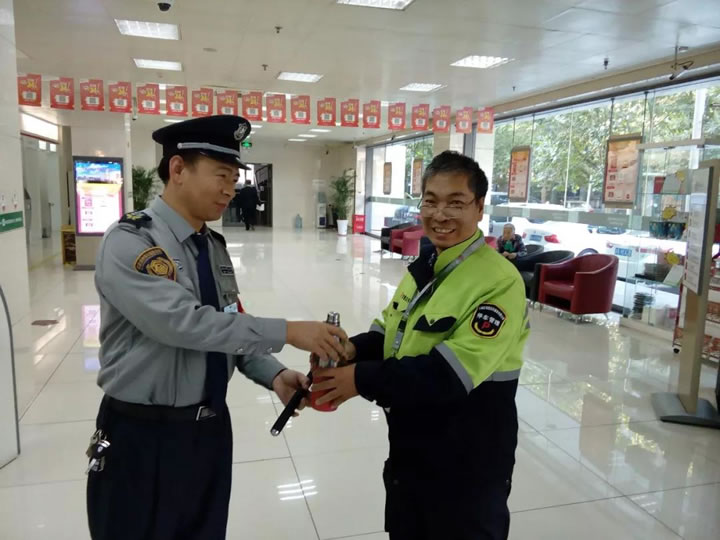 近日,國盾特衛守護三大隊駐某銀行保安員谷炯亮在執勤時,發現智慧泊車人員因天氣變冷喝不上熱水,谷炯亮得到客戶單位允許后,積極上前并幫助保安員幫助接來熱水,保安員熱心助人的精神得到泊車人員和單位領導一致好評。