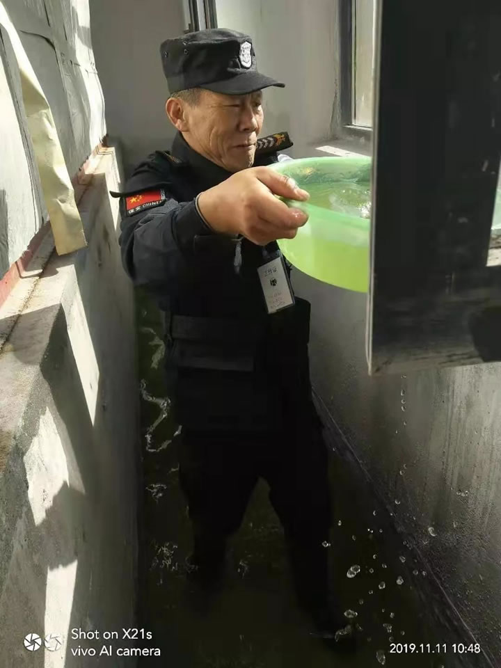 近日,國盾特衛公司運營一部一大隊駐某單位保安員執勤時,發現客戶單位的高位水箱不斷滴水,保安員及時進行了修理。并在第一時間對隱患部位做了標記,加強了巡邏力度。由于高位水箱年久失修,漏水情況再次發生,而且由于漏水嚴重已經沒過膝蓋,隊員們考慮到積水不及時處理就會直接影響到樓下居民,在關鍵時刻保安員不顧天氣寒冷,利用水桶、臉盆等工具對積水進行了清理,此次水箱漏水事件由于保安員發現及時,措施得當,有效杜絕了漏水事件的造成的經濟損失,保安員的盡職盡責受到了主管領導的高度認可。