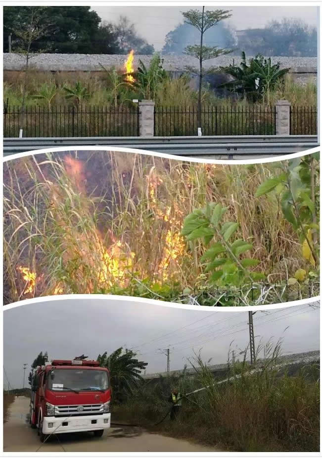 2019年12月5日下午16時許,北汽福田廠西南方向院墻外鐵路邊突然著火,我司派駐北汽福田廠保安隊長馮大喜第一時間發現火情,立即前往現場查看,并及時向廠相關部門領導上報情況和報119火警,又因火勢較大,特向廠相關部門領導請示啟用廠內消防車進行滅火。獲得批準后,隊長馮大喜帶領班長孫宗朗開消防車到現場進行滅火,防止火勢進一步蔓延。10分鐘后,專職消防隊趕到火警現場,經過聯合撲救,及時將大火撲滅。