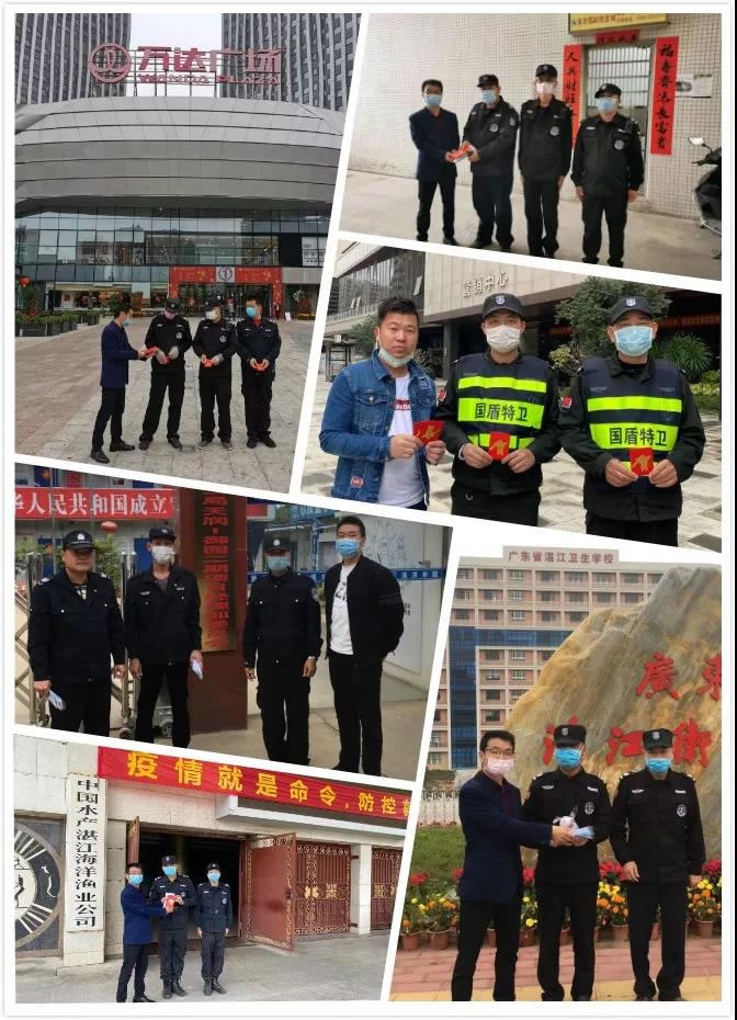 2月4日上午,國盾特衛黨支部書記、總經理楊仁岳,行政經理鄢小豐分別帶領公司管理層先后赴各項目執勤點督導新型冠狀病毒感染的肺炎疫情防控工作,并看望慰問堅守崗位的一線保安隊員們,且送上節日的祝福與防護口罩,對他們恪盡職守的精神給予了肯定,鼓勵大家再接再厲不松懈,并特別叮囑隊員們一定要做好自身防護工作,確保安全。