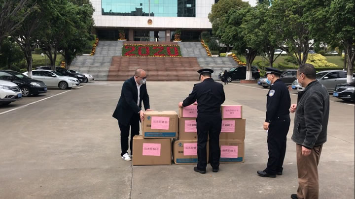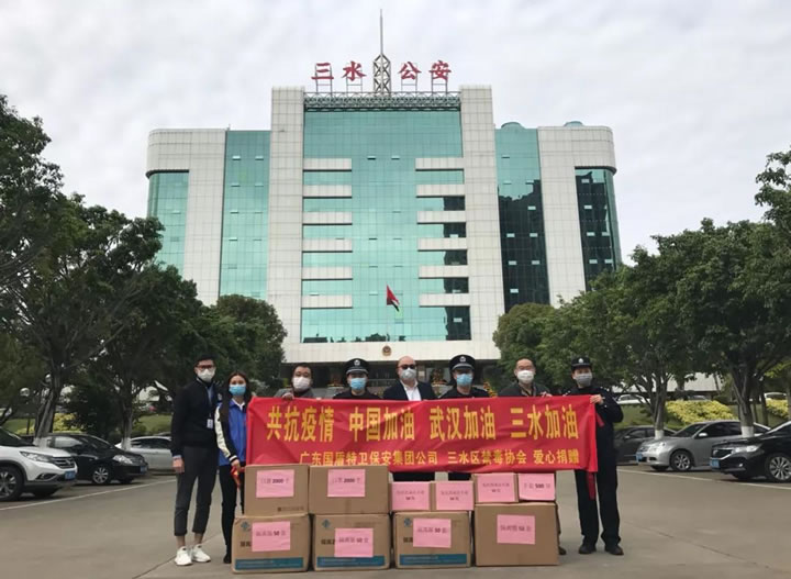公安為人民,人民助公安。警企協力,齊心抗疫。新型冠狀病毒感染的肺炎疫情發生以來,廣東國盾特衛保安集團有限公司繼向云東海總商會捐贈3萬元人民幣、先后向云東海街道辦事處、三水區人民醫院捐贈一批防護物資,2月17日下午,又攜三水區禁毒協會向三水區公安分局捐贈了一批醫用防護物資,計有醫用隔離服200件、一次性口罩4000只、隔離手套500雙、免洗消毒洗手液150瓶等等。三水區禁毒協會會長、集團黨支部書記、董事長夏學樹在簡短的交接儀式上代表公司及區禁毒協會,向三水區公安分局全體警輔人員始終如一堅守一線抗擊疫情,恪盡職守全心全意的守護三水人民的平安,表示崇高的敬意和衷心的感謝,并用實際行動為共戰疫情盡一份綿薄之力。