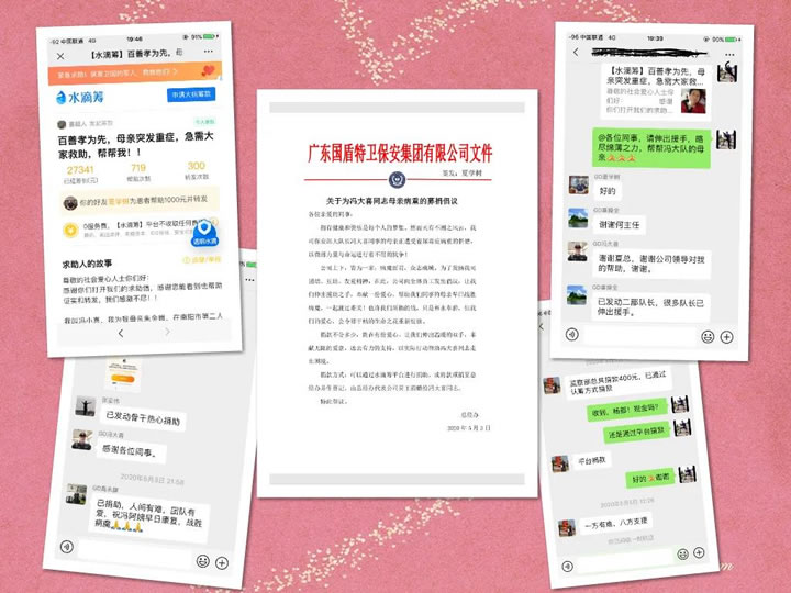 擁有健康和快樂是每個人的夢想!然而天有不測之風云,我司保安二部大隊長馮大喜同志的母親突發尿毒癥,病情危殆。集團公司在第一時間得知此消息后,公司領導親自詢問病情,并委托總經辦發起募捐倡議,同時組織公司全體員工舉行了“獻愛心募捐活動”,通過轉發水滴籌平臺進行線上捐助,共募得善款20000元左右。