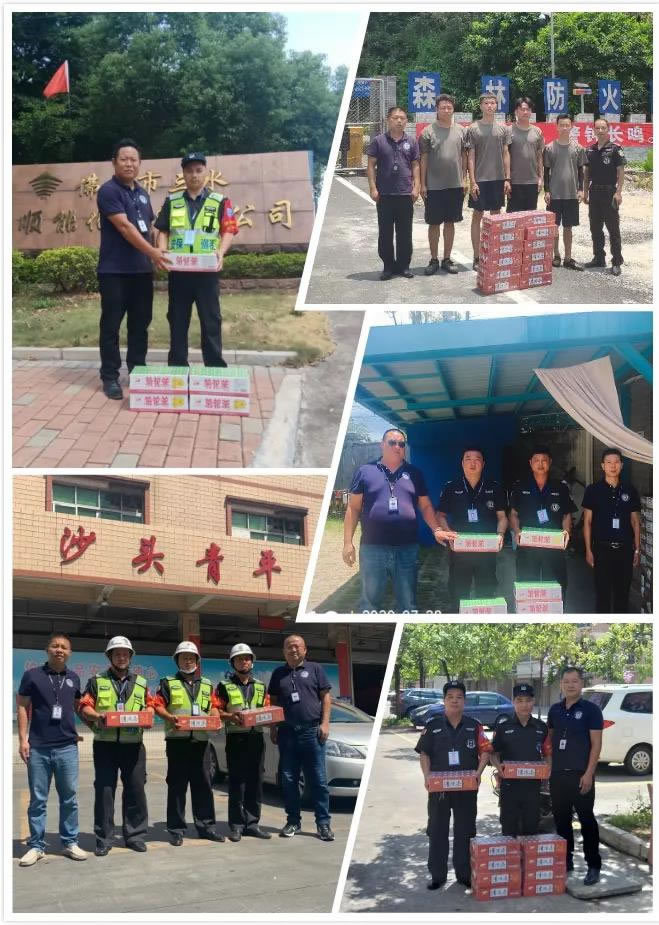 炎炎盛夏,高溫酷暑,國盾特衛保安員頭頂驕陽、不畏酷暑、堅守崗位,堅持以高質量、高標準的工作態度完成各項安保工作。為保障一線保安員的身心健康,切實做好夏季防暑降溫工作,廣東國盾特衛保安集團有限公司工會委員會組織服務管理部各級干部關心關愛保安員,開展夏日“送清涼、保安全”活動,確保一線基層保安員安全度夏,為堅守在高溫下一線工作的保安員送去了清涼和公司的關懷。