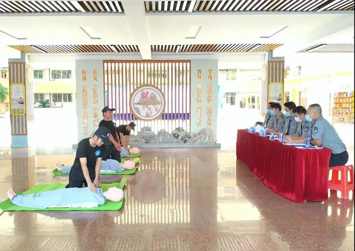 該競賽分為理論知識考核和實操技能考核兩部分。其中,實操技能考核,包括隊列基本動作及擒敵拳技能、現場救護技能、保安人防技能三項。