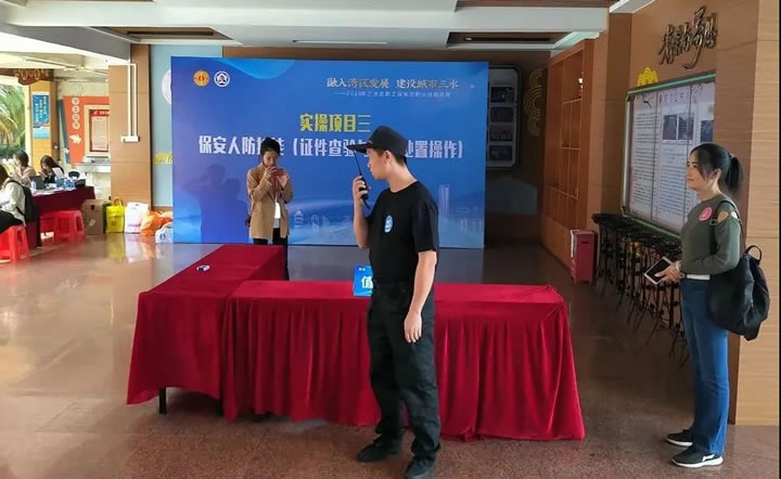 保安人防技能則要求參賽選手對現場模擬人群中的1名嫌疑人進行識別、證件查驗和查問、上報情況等現場處置能力。