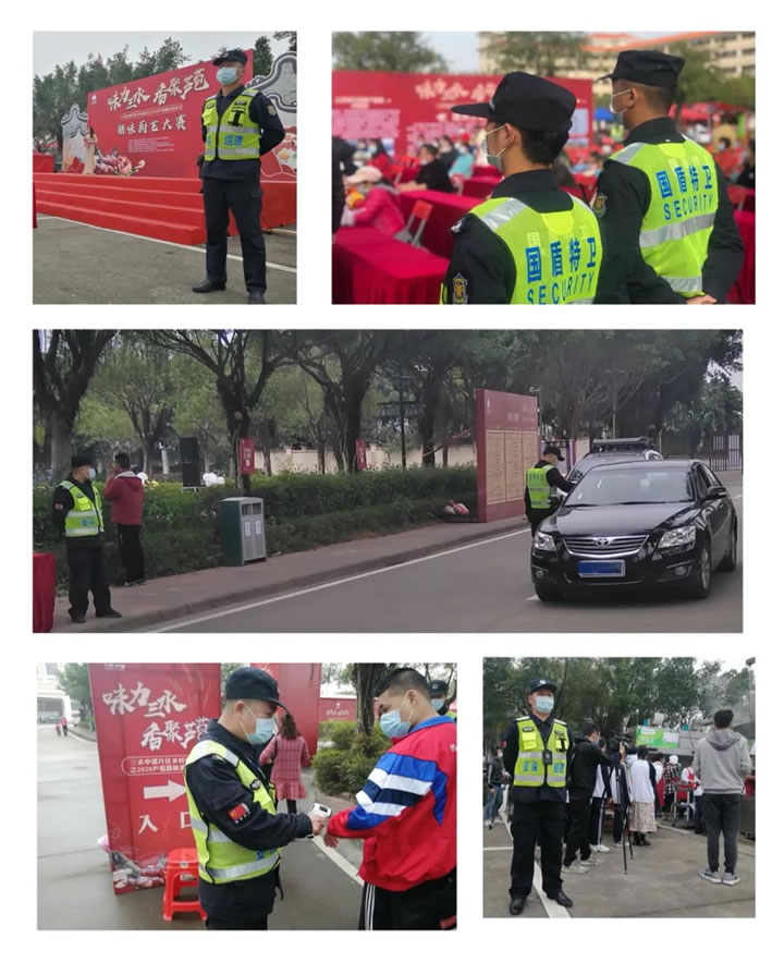臘味美食節舉行期間,集團公司服務管理部根據安保方案工作要求,按照安保方案各安防力量布控點進行分工,以良好的紀律作風和嚴謹負責的專業精神,在安保執勤工作中,全體保安員各司其職、嚴謹有序、發揮連續作戰精神。