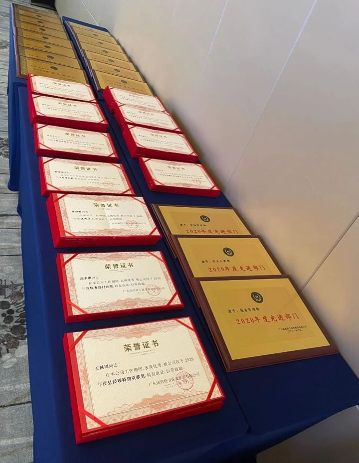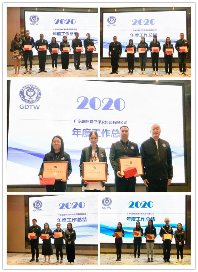 3月9日下午15時,廣東國盾特衛保安集團有限公司召開2020年度工作總結表彰大會,各部門員工、優秀保安員、先進分隊代表約100多人參加了此次大會。