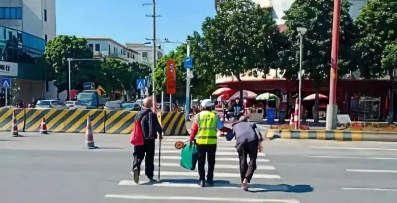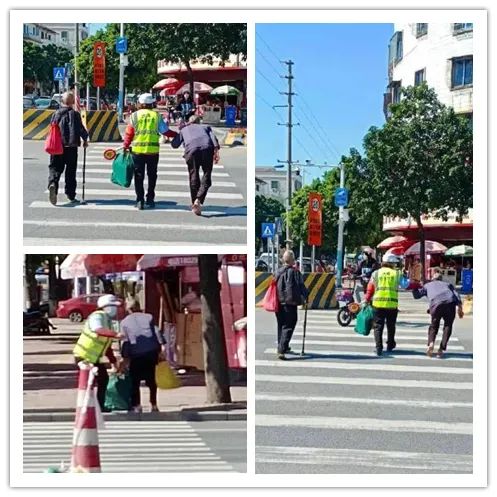 這就是我們國盾特衛派駐的交通勸導員歐梅娣,您一手提東西一手牽著阿婆的手過斑馬線的背影很美;您雙手推著車和老爺爺盡力的往前推的背影很暖心;這是城市最美的風景線,您是最美的天使!