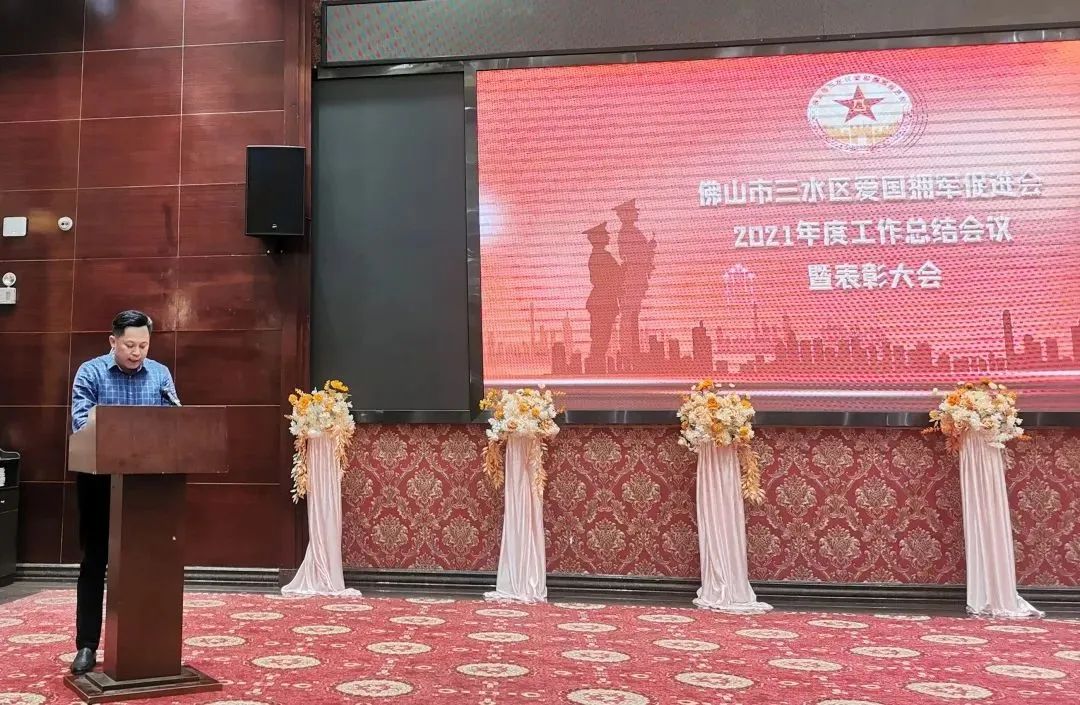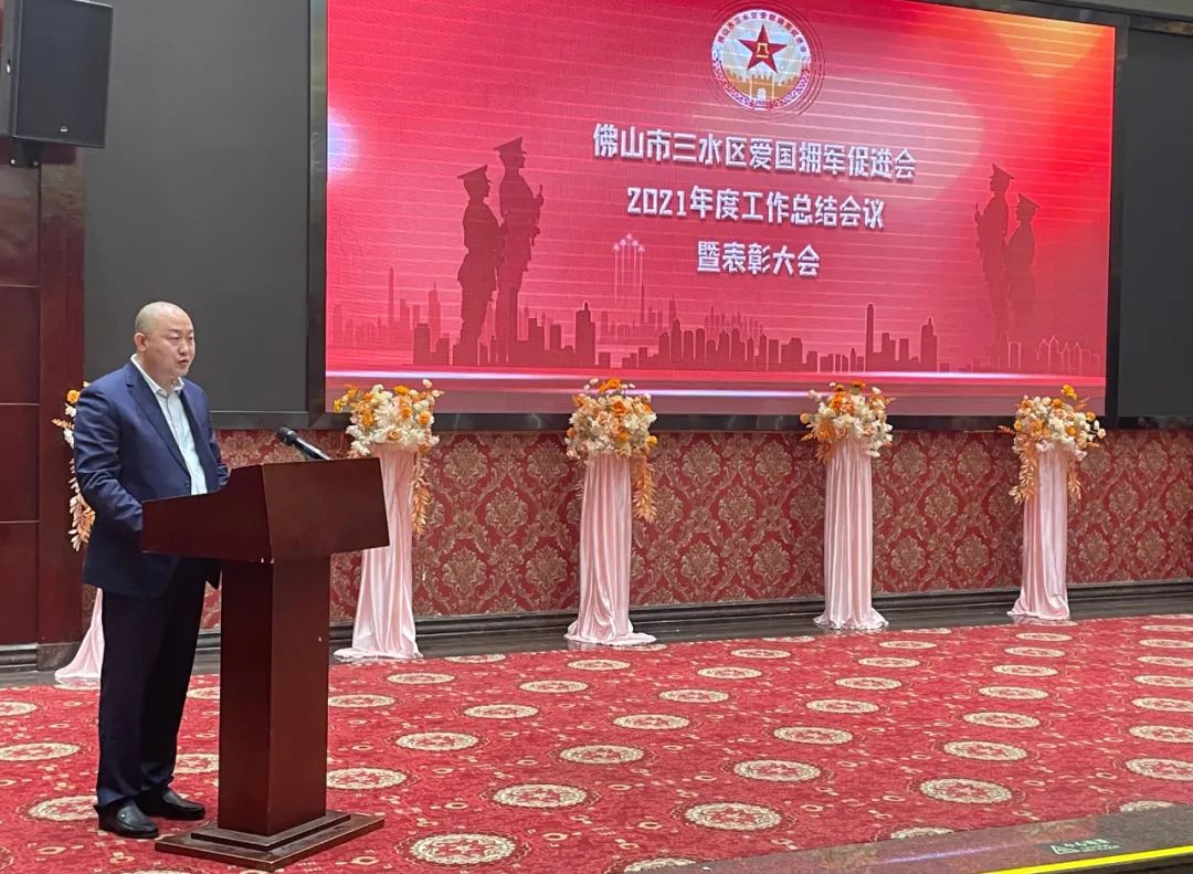 集團公司董事長夏學樹代表佛山市三水區愛國擁軍促進會作2021年度工作總結