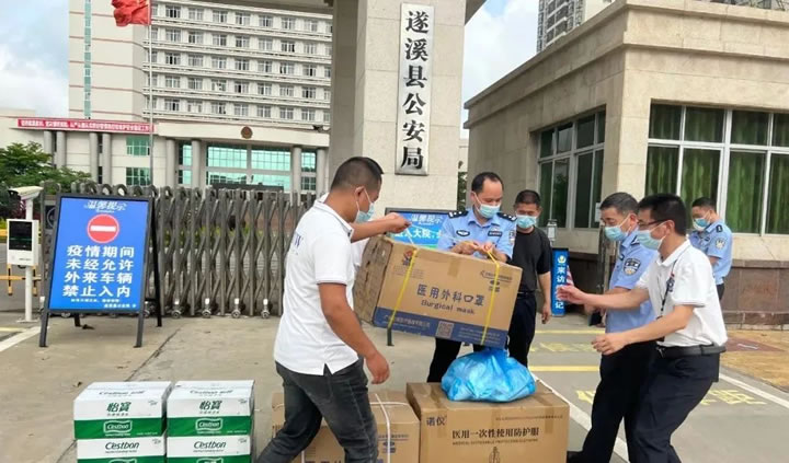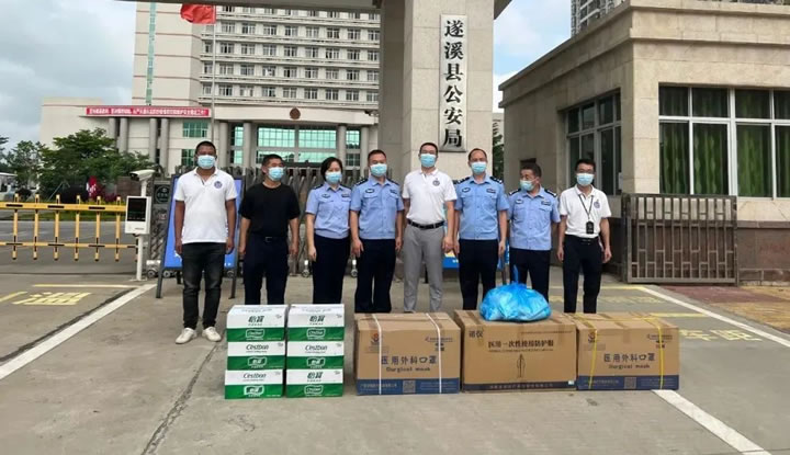 新冠無情,人間有情。5月9日下午,廣東國盾特衛保安集團湛江分公司黨支部書記楊仁岳率領公司員工向遂溪縣公安局捐贈抗疫物資,助力一線疫情防控工作。遂溪縣公安局領導代表接受我司現場捐贈防護服50套、醫用口罩9000個、礦泉水10箱,并對我司致以衷心的感謝。