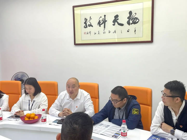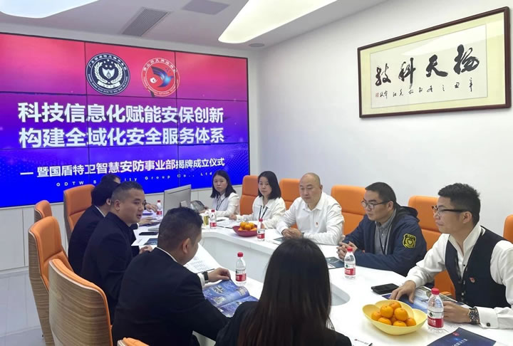 揭牌儀式后,雙方管理層在會(huì)上進(jìn)行深入座談交流。揚(yáng)天網(wǎng)絡(luò)科技公司董事長(zhǎng)唐志楊首先介紹公司團(tuán)隊(duì)運(yùn)營(yíng)管理、服務(wù)案例、技術(shù)研發(fā)能力等情況,并分享目前信息系統(tǒng)集成行業(yè)發(fā)展趨勢(shì)以及面臨客戶業(yè)務(wù)深度延伸拓展的困境,探索如何利用信息化拓展服務(wù)應(yīng)用場(chǎng)景,從“堆箱子”服務(wù)向客戶全生命周期服務(wù)轉(zhuǎn)變。我們成立國(guó)盾特衛(wèi)智慧安防部的初衷是為了深挖服務(wù)的增值點(diǎn),并致力于將保安人員、安防平臺(tái)與高科技技術(shù)進(jìn)行有效融合,通過信息化應(yīng)用場(chǎng)景搭建云平臺(tái)管理系統(tǒng),再借助我們現(xiàn)有的安保相關(guān)業(yè)務(wù),形成一套更加完整完善、人技物一體化的全域安保服務(wù)體系,為我們的客戶單位提供沉浸式的智慧+服務(wù)方案。