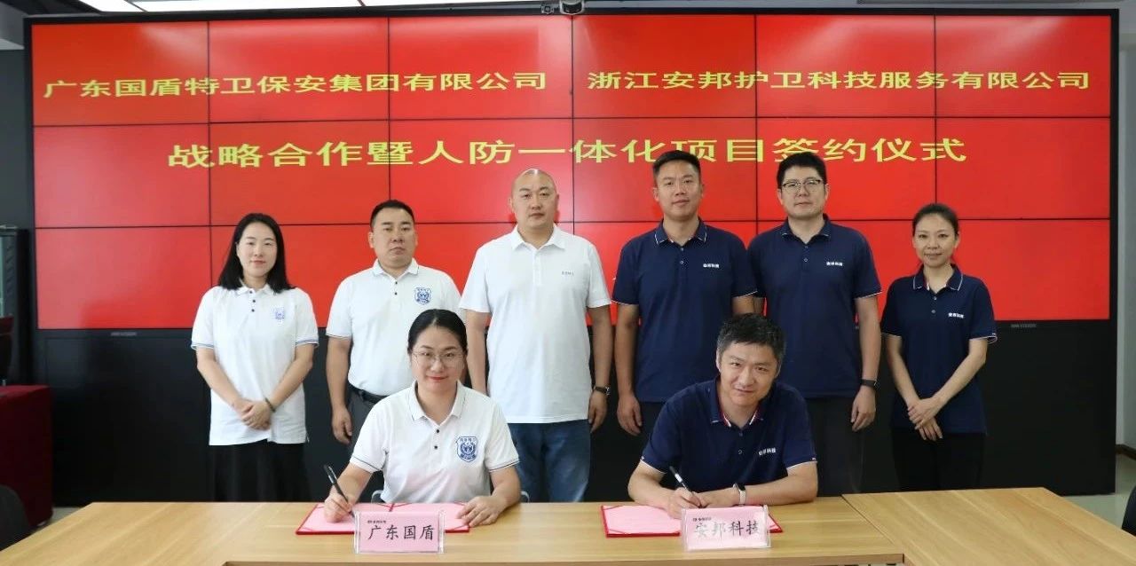 為加速構建全域化安全服務體系,推動保安行業數字化轉型,2025年7月10日上午,廣東國盾特衛保安集團有限公司與浙江安邦護衛科技服務有限公司在杭州正式簽署戰略合作協議及人防一體化項目協議。此次合作是繼今年1月集團黨支部書記、董事長夏學樹率隊赴浙考察后,雙方在科技賦能安保領域邁出的實質性步伐。